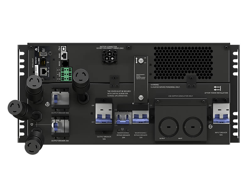 Integrated external maintenance bypass with the 5-10kVA models to support the load during planned maintenance or UPS upgrades and is available as an optional accessory for other models.