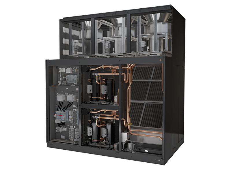 The Liebert® DSE Freecooling Solution provides high efficiency, water-free economization, maximum reliability, low maintenance and rapid scalability – all in highly flexible split-system configurations. Its pumped refrigerant economizer captures the most economization hours across the widest range of temperatures, compared to other similar systems. The Liebert® DSE packaged solution uses proven pumped refrigerant economizer technology that is deployed in more than 6,000 to 8,500 sites around the world. With a highly flexible design, the solution is available in configurations from 50kW to 265kW. 60kW, 400kW and 500kW capacities. Highly Flexible. The system provides split-system refrigerant economization with more than two dozens configurations for airflow, form factor and capacity. It can be deployed in perimeter, gallery and full-face discharge applications for raised floor and non-raised floor data centers. No Outside Air. The system’s pumped refrigerant technology separates outside air from data center air to eliminate cross-contamination or humidity transfer. Finely Tuned Controls. The system’s industry-leading Liebert® iCOM™ controls capture every available economization hour, with smooth, automated transitions. Advanced protection routines keep the system operating safely within thresholds. Automatic, multi-unit teamwork modes harmonize thermal management across the data center. Optimization routines reduce energy usage by up to 50% over previous versions. Onboard protocols make integration with building management systems easy. Easy Servicing. The Liebert® DSE has fewer moving parts than other economizer systems, reducing the likelihood of component downtime and maintenance. All components can be serviced from the back of the unit, allowing for more flexible installation options.